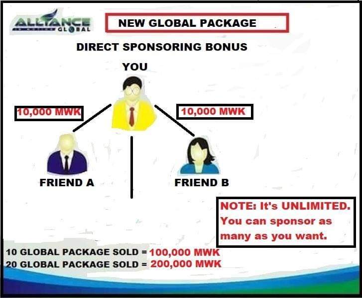 - DIRECT REFERRAL BONUS For your every personal invites joined, you will earn 10,000 MWK.